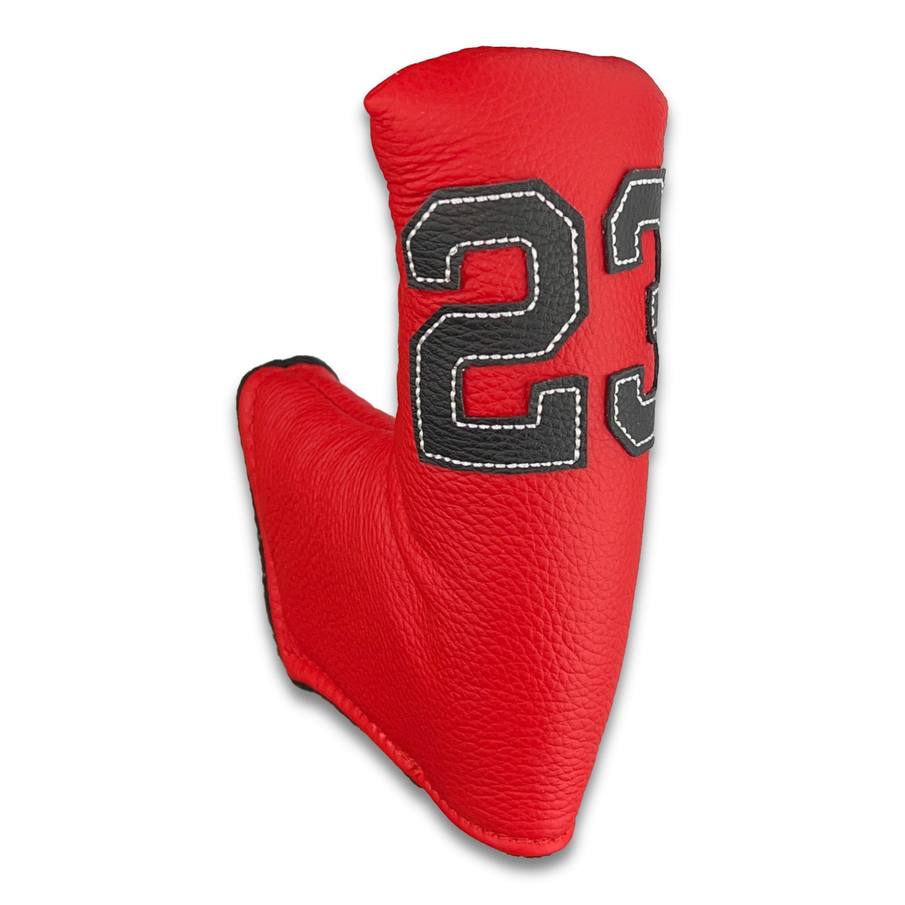 The iconic 23 comes to the putter with the GOAT Putter Cover using a black laser cut 23 with white trim stitch on red GT-L. Standard or wide blade sizing and velcro or magnet enclosure. Made in the USA.